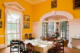 8 - Dining room - it used to be light blue, matching the decor on the fireplace. But recent research and paint technology has revealed that it was Chrome Yellow. It's pretty bright.